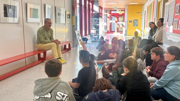 Der Künstler Jochen Gewecke bei der Vernissage im Rahmen der Ausstellung "Kommt zusammen" im Herbst 2024.